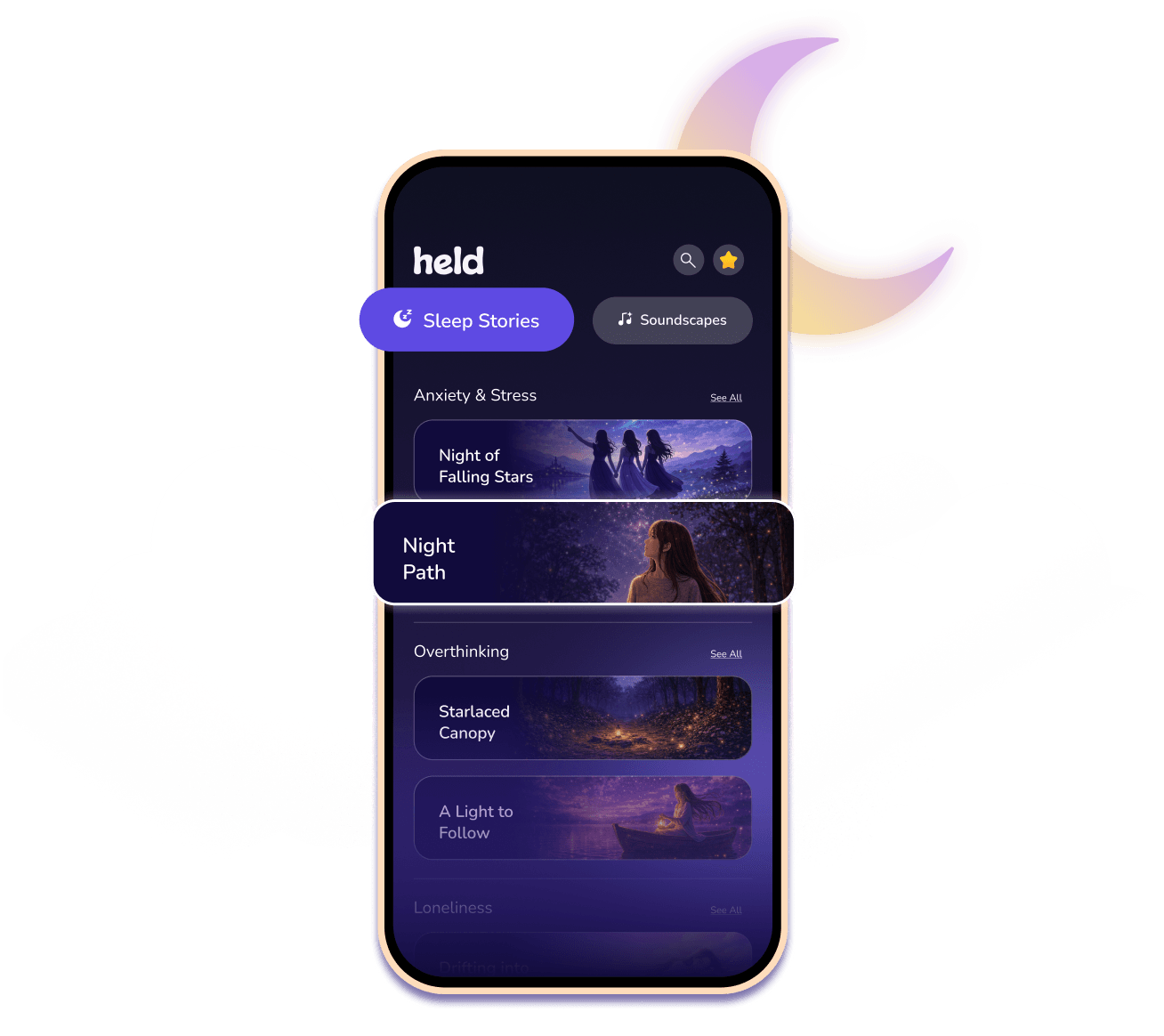 Some nights are heavier than others. Held is designed for those moments. A quiet presence you can return to when your mind feels full or restless.